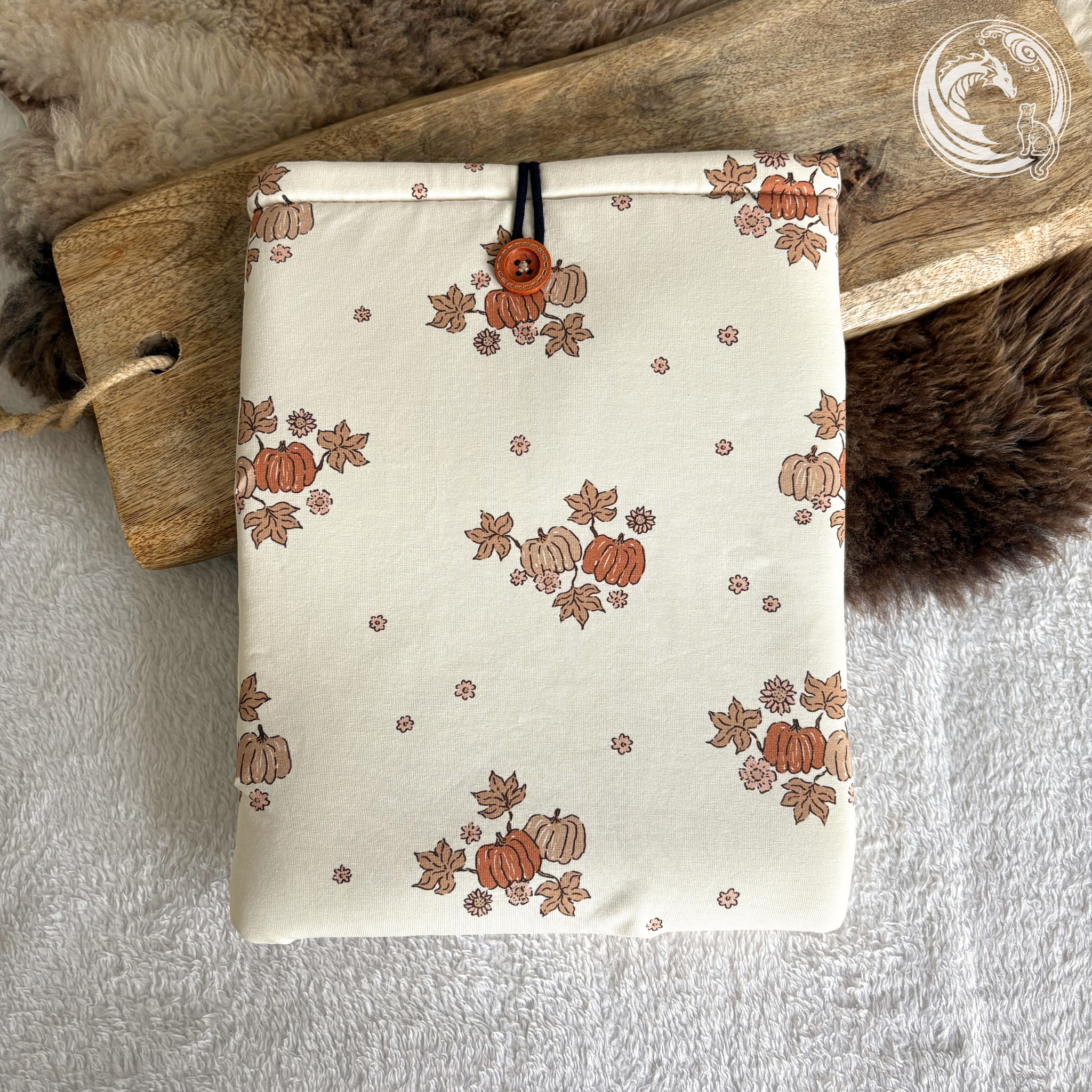 This booksleeve features pumpkins and leaves. Perfect for fall and Halloween lovers!